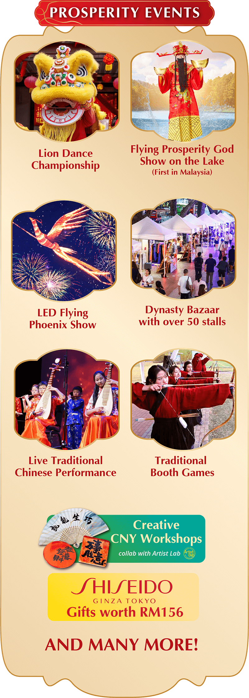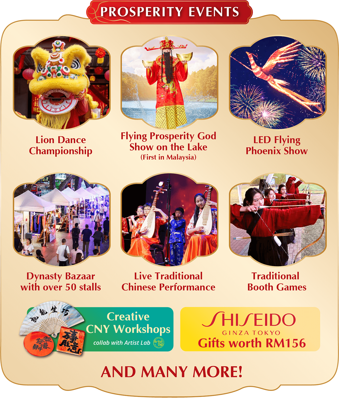 From Malaysia’s first-ever Flying God of Prosperity to a Sky Phoenix LED drone show, you’ll be in for a treat! Plus, don’t miss the Acrobatic Lion Dance Championship, along with a majestic Song Dynasty bazaar with up to 50 stalls serving up traditional Chinese street fare and crafts. There will also be creative workshops and game booths for kids to enjoy!