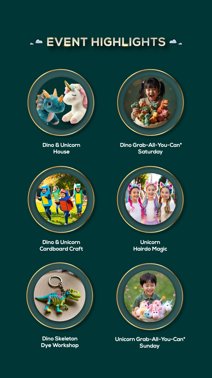Step into a one-of-a-kind world where dinosaurs ROAR and unicorns SOAR! ✨ Immerse yourself in magical themed houses, fun-filled activities, and creative workshops designed for all ages. Whether you’re a dino explorer or a unicorn dreamer, there’s something exciting waiting for you!