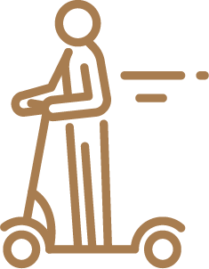 Move around the vibrant community by eco-friendly scooters and bicycles