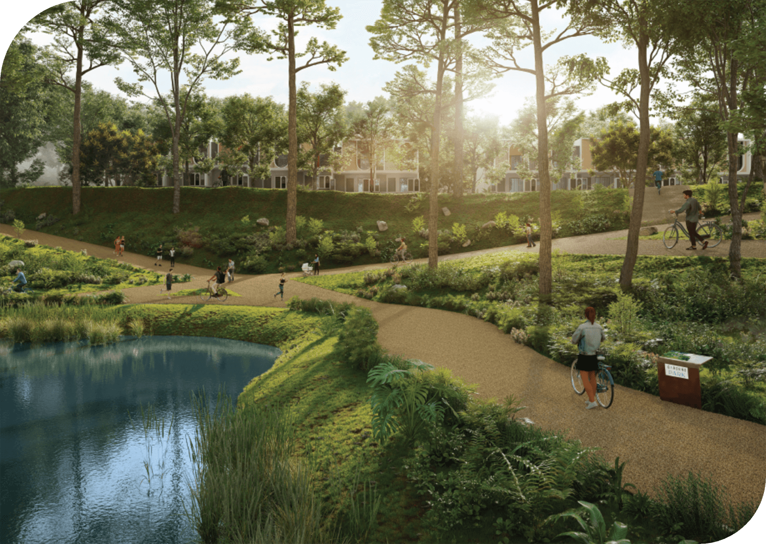 Encompassing Gardens Park, the Ring Park extends from your doorstep throughout the township, seamlessly connected by pedestrian, bike, and jogging trails with access through an underpass.