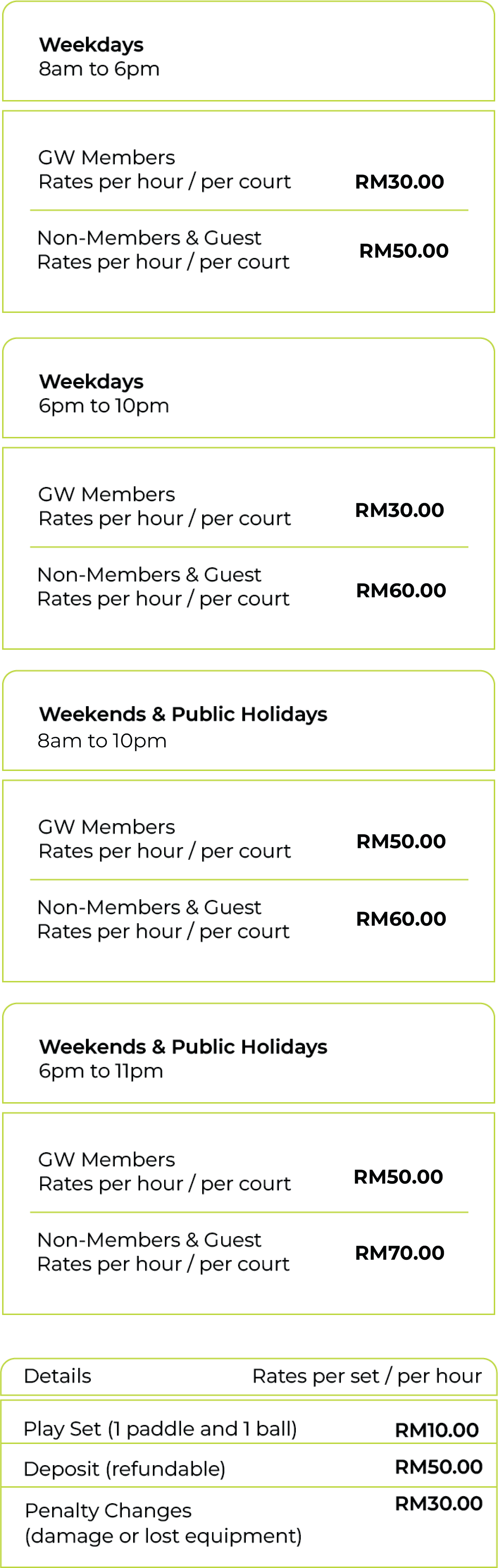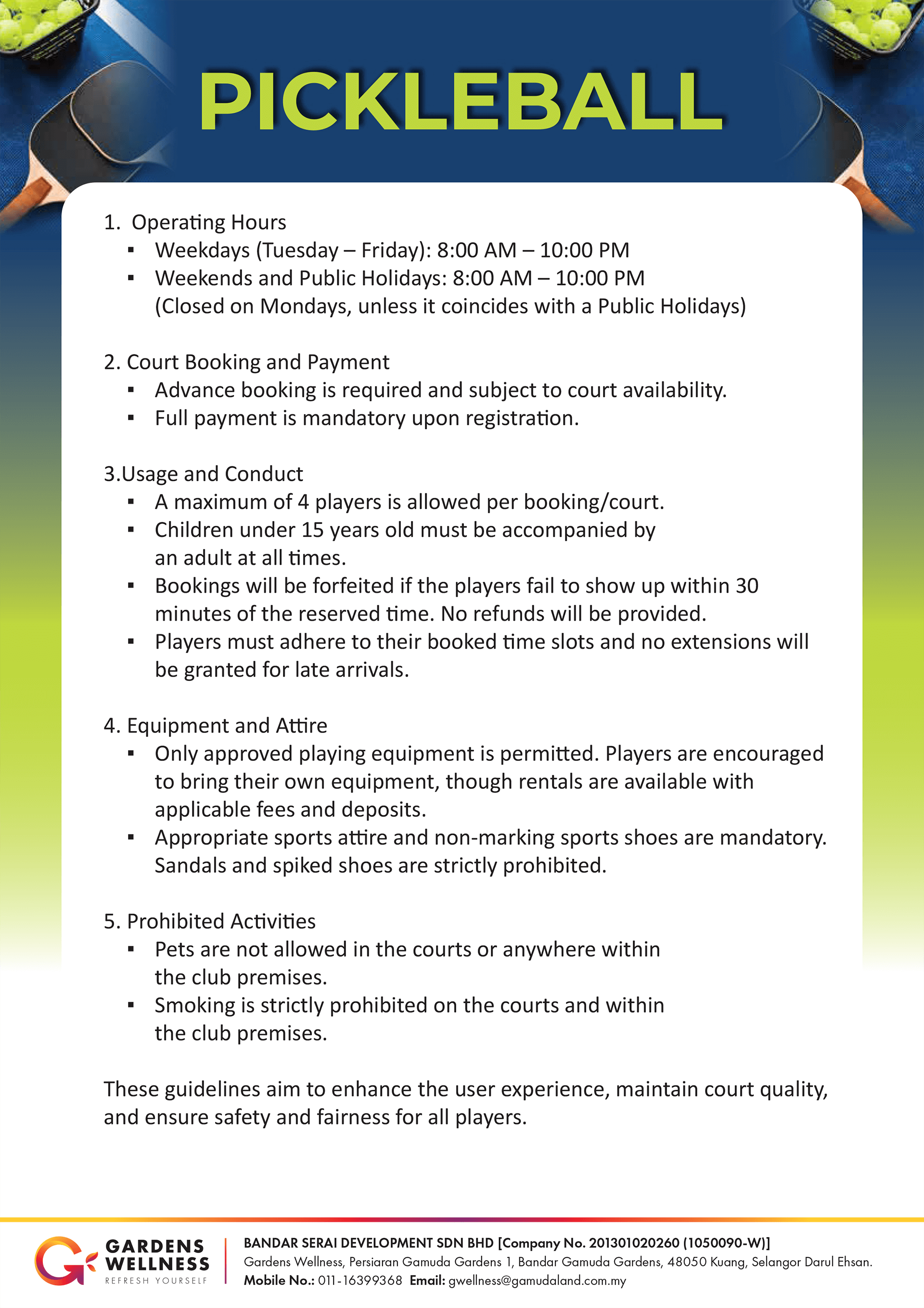 Pickleball Court, Equipment Rental & Gardens Wellness General Enquiry