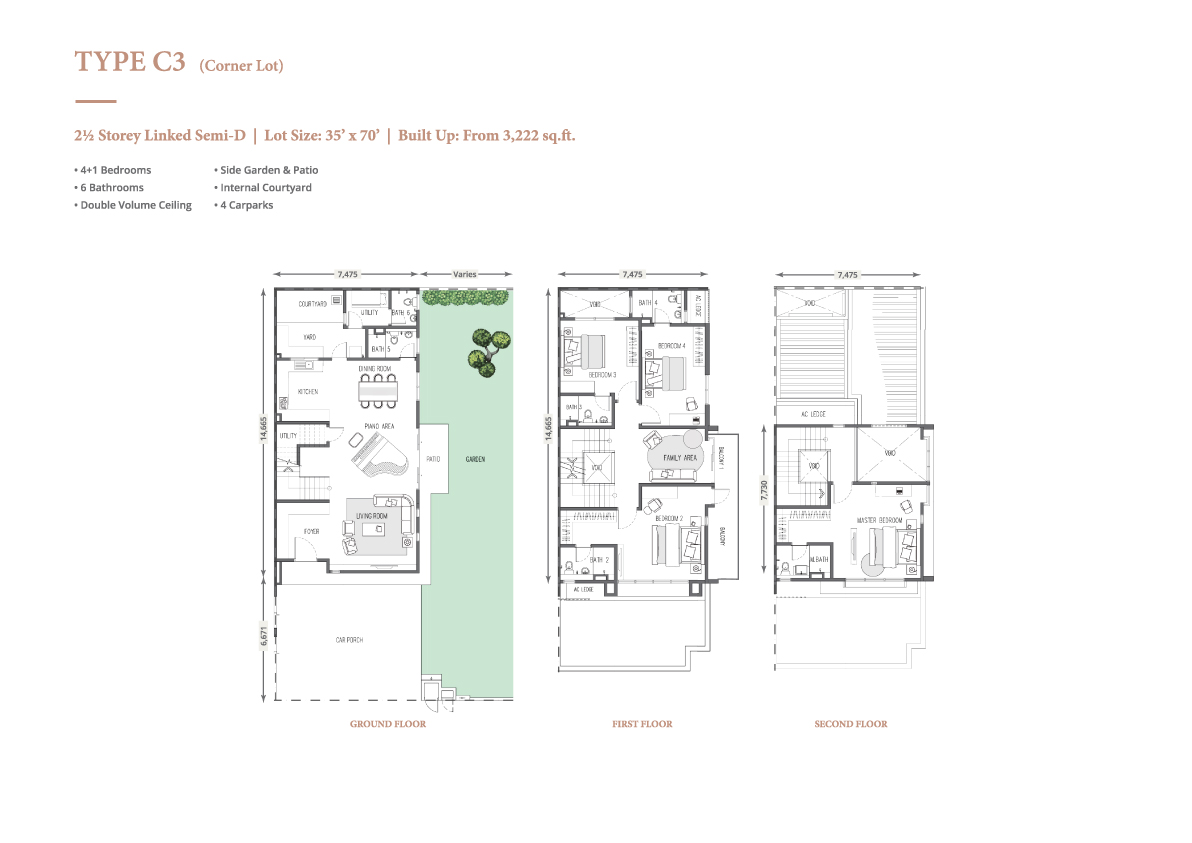 Open the doors to step into your personal green space with your private side garden and patio, while natural sunlight shimmer through the thoughtfully placed courtyard. With layouts that encourages family interaction and community building, Jovita is a home not only for the generations now but also that of to come.